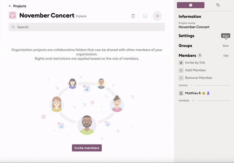 On Newzik Web, project members (as opposed to project admins) cannot do the following actions: