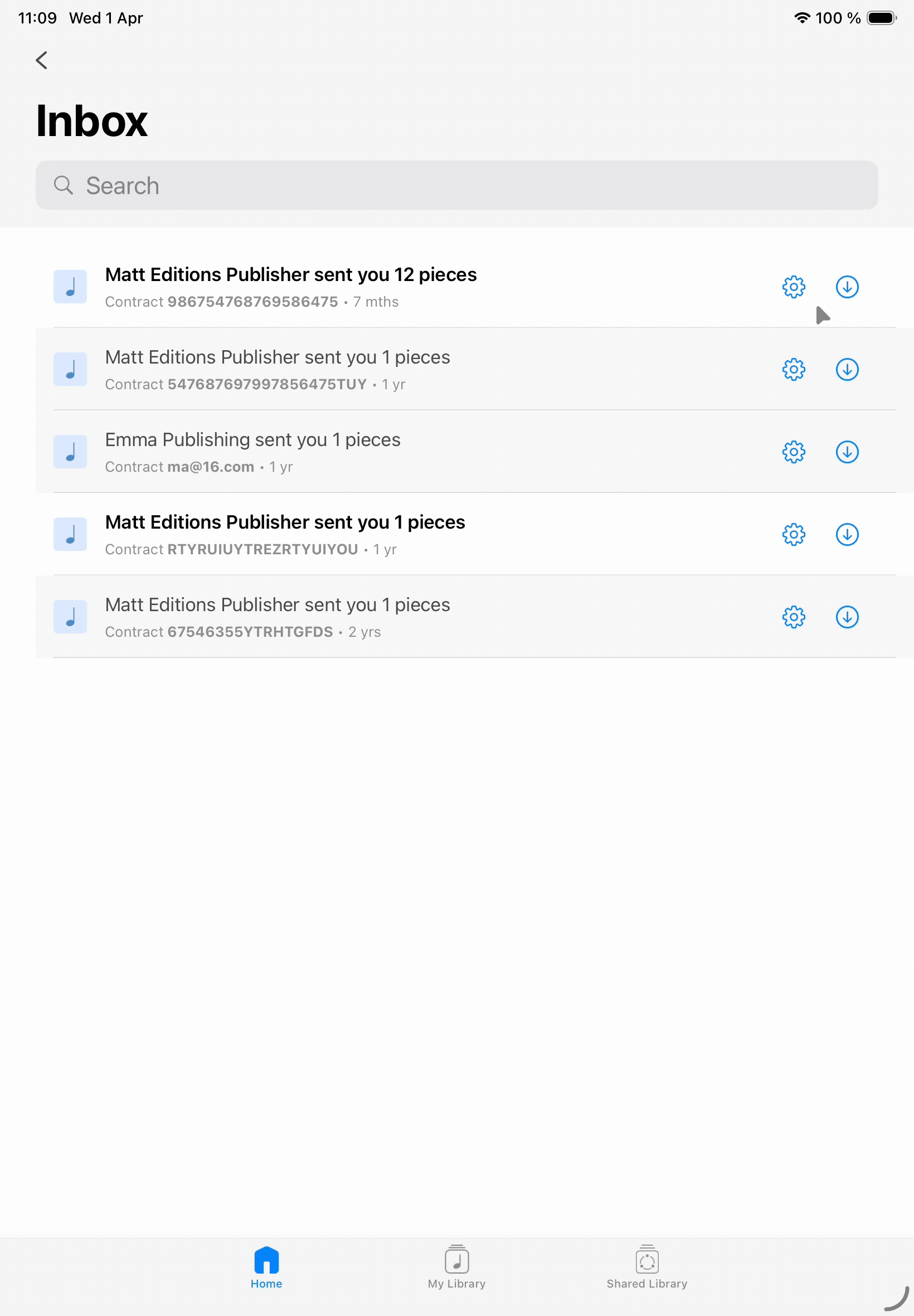 - Then, go back to your Inbox, click on the cogwheel (iOS app) or project symbol (Newzik Web) corresponding to your contract