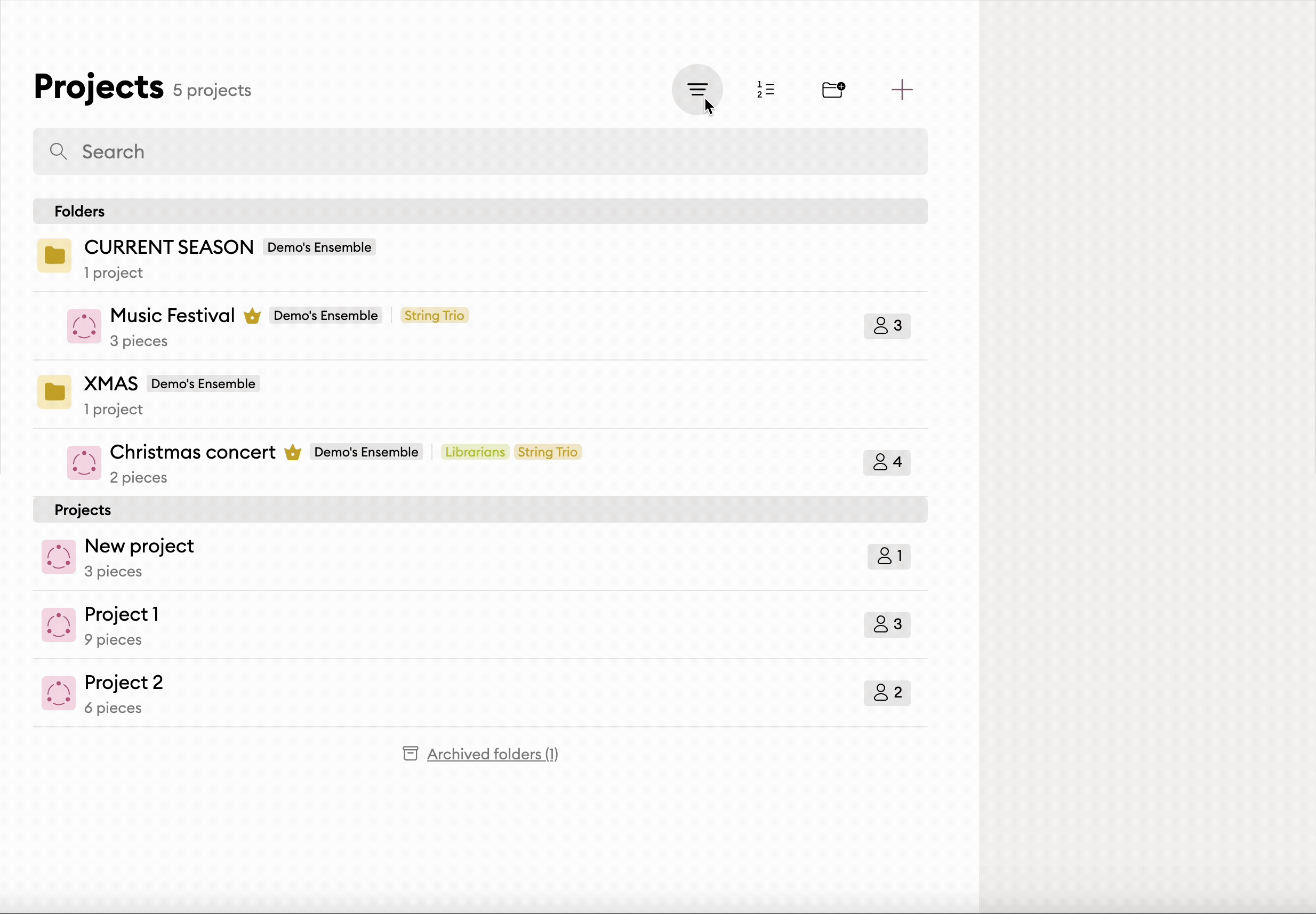 L'un des avantages de l'ajout de groupes à des projets est de permettre de les filtrer dans la vue Projets (l'autre avantage majeur est de pouvoir ajouter facilement un groupe d'utilisateurs à un projet).